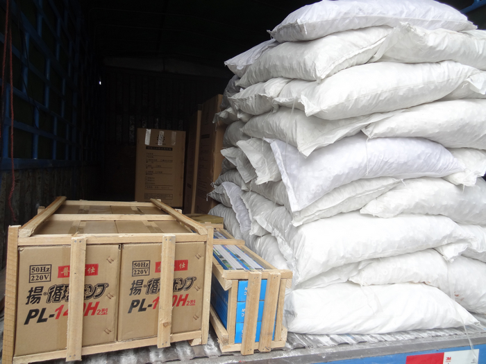 今天早上通知物流公司过来,迅速将鱼池过滤器材装上车,准时发货。