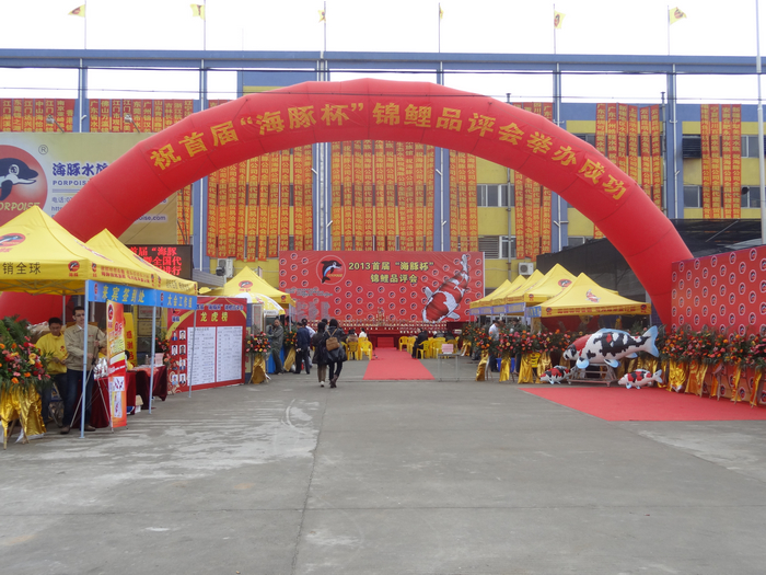 2013年首届“海豚杯”锦鲤品评会将于本月13、14号江门举行,届时,600名国内同行前来切磋技艺,评选最美锦鲤。江门是中国锦鲤之乡,已连续举办两届中国锦鲤博览会,在国内地位较高。这次品评会聚集了锦鲤之乡南方珠三角地区的众多锦鲤场,各渔场精品参赛鱼,规模非常大,观众很多,大饱眼福,场面非常热闹。我们金碧林也参加这次品评会,虽然天气很冷,也下起了雨,但是也阻挡不了我们看鱼的热情。 这次品评会不仅看到各渔场锦鲤的美、精,在场也有很多美女,真是大饱眼福(小编是女孩纸喜欢看鱼也喜欢看美女哦~~~~~)。
