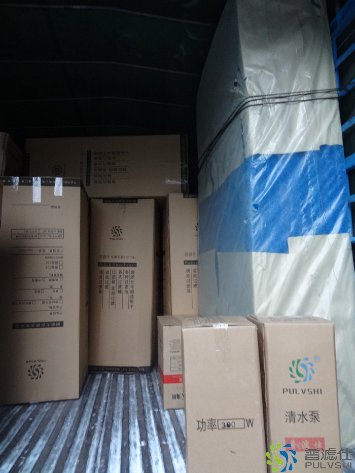 我们工作人员接到订单,迅速将鱼池过滤器材装箱包装好,在第二天发货。