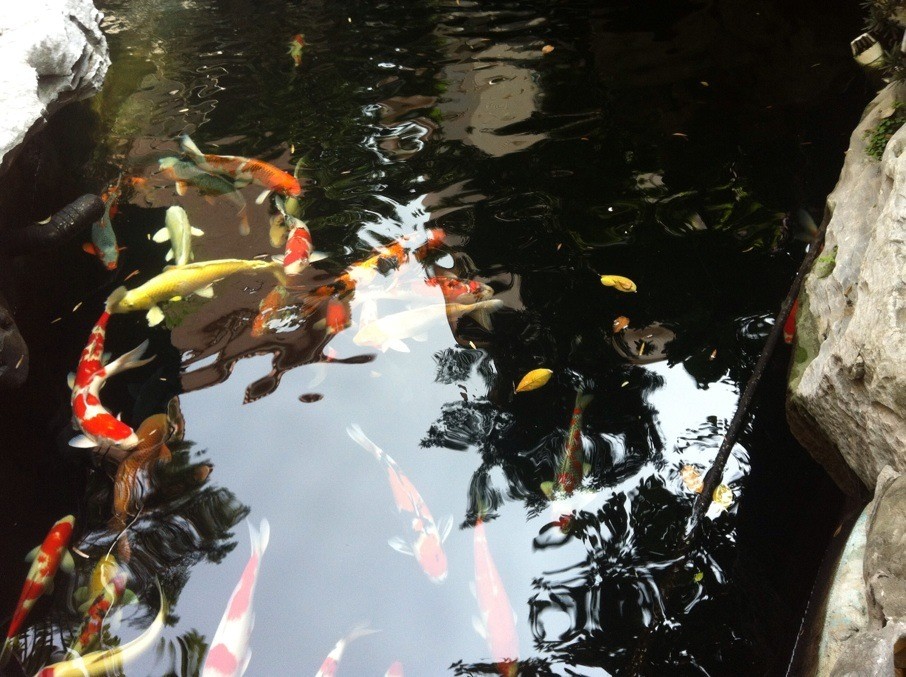 养鱼先养水:因为锦鲤鱼的排泄物也相对比较多,锦鲤,吃的多,拉得多,成长也快,水质很快就会败坏,鱼的排泄物溶于水中经各种途径产生亚硝酸盐、氨氮等有害物。有害物溶度过高时,鱼活动力减弱,浮上水表面,体色变淡,常常会引起鱼无名死亡。锦鲤鱼池过滤系统是非常关键的,鱼池如果没有过滤池,鱼池最后都是死水、臭水、水质败坏,同时也影响了鱼池的风水作用。而经常性的换水又有可能使鱼的品质下降,因为自来水中含有次氯酸、盐酸、氯气等等,对鱼儿是有害的。所以鱼池一定要科学合理的做好水处理系统。
